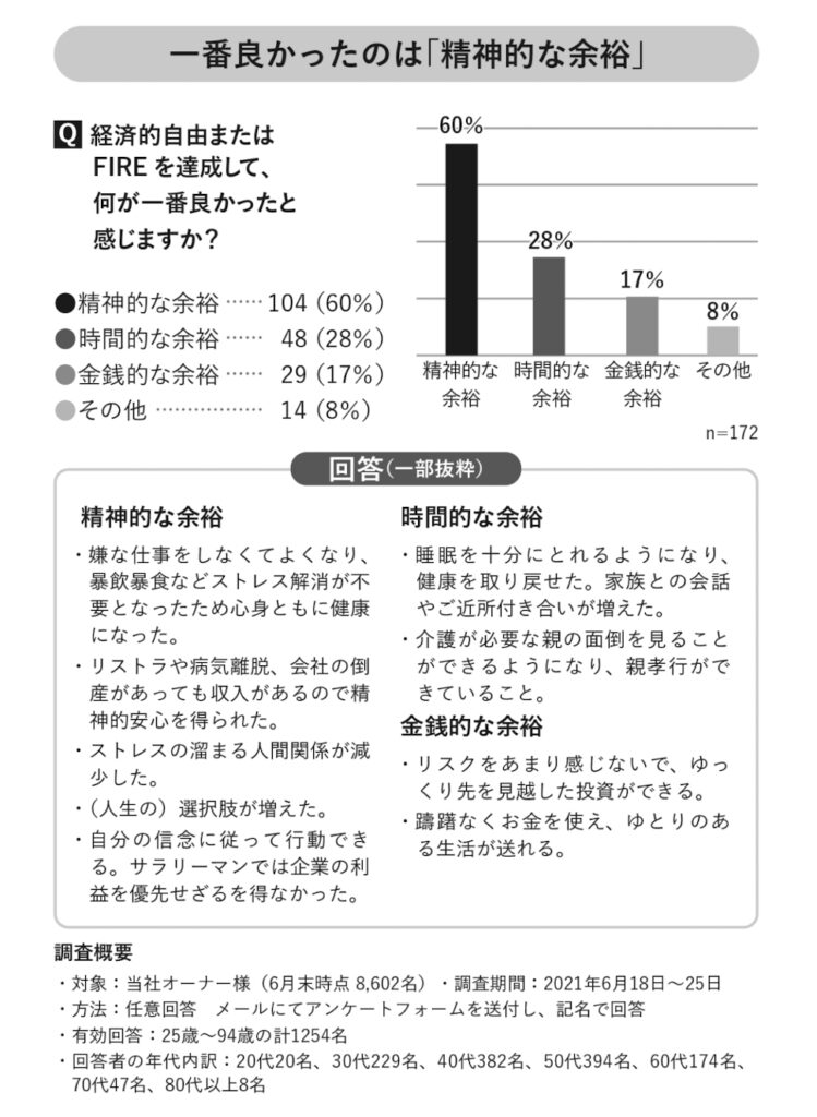 それは、『経済的自由を達成して一番良かったと感じること』です。