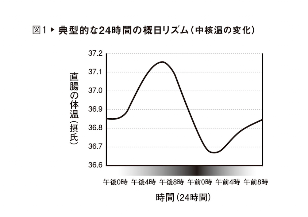 図 1はそんな概日リズムの一例であり、 1日のうちの体温の変化を表している。