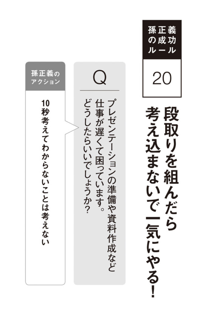 孫正義であれば、いつも「今すぐ人につなげ(連絡しろ)」となります。