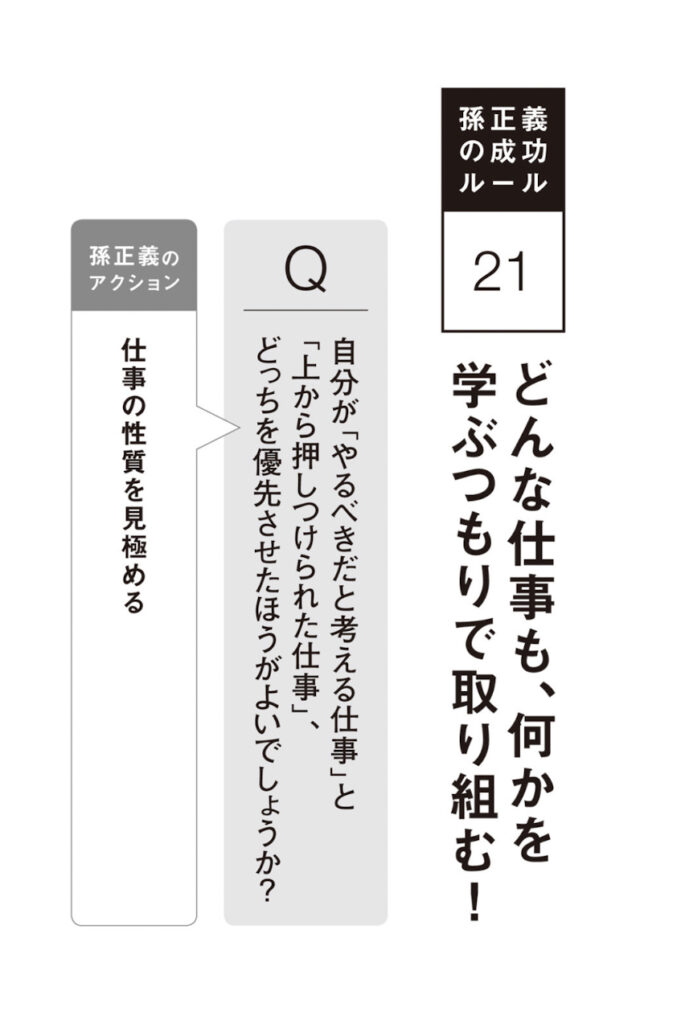 これが、孫正義の言う「仕事の悩みは、仕事でしか解決できない」ということです。
