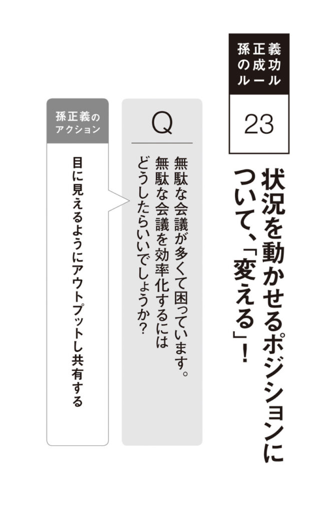 孫正義は、一度会議を始めたら、朝から夜まで同じテーマで会議をぶっ続けでやったりもします。
