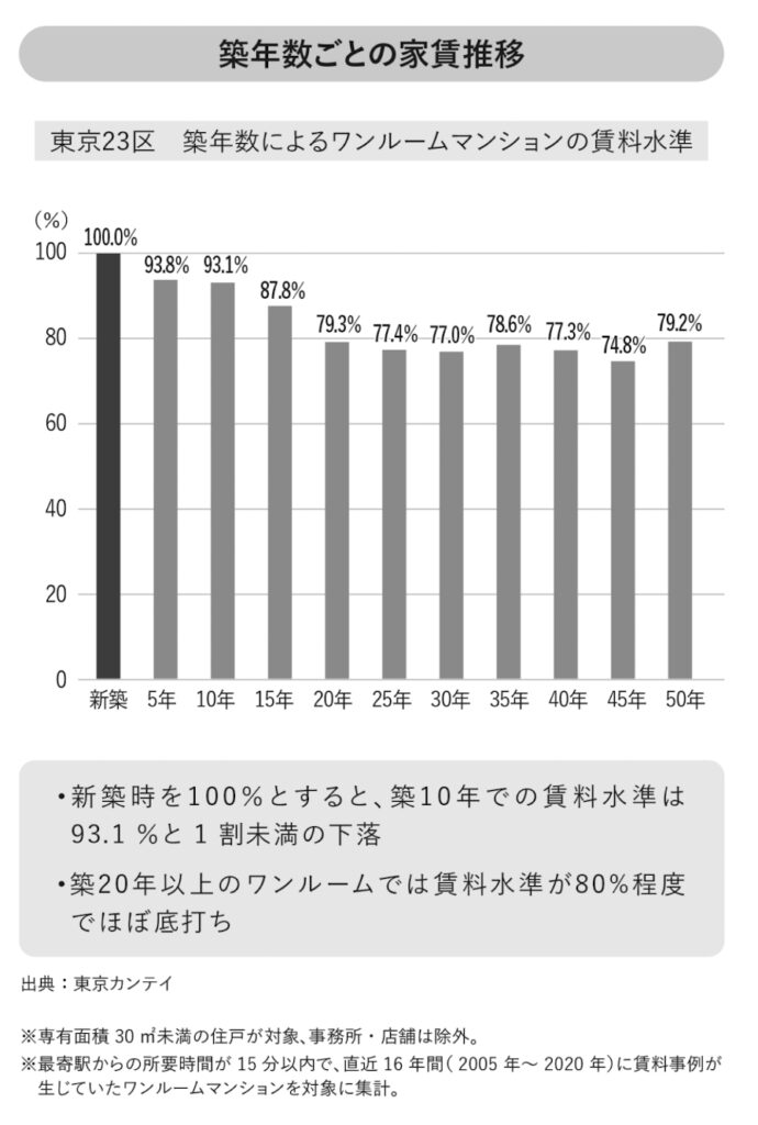一方、 1995年から 1999年までに分譲されたワンルームは 3813円で、ワンルームの平的な広さである 20平方メートルに換算すると 7万 6260円です。