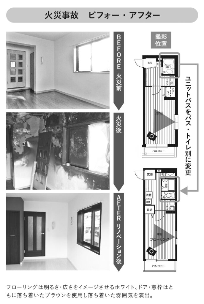 全焼するほどの火災でも、 2か月もすれば新築同然にリニューアルをした部屋に生まれ変わらせることができます。