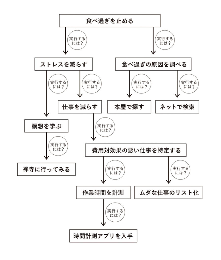 たとえば「企画書の提出」といったゴールがあった場合、「企画の決定」「執筆」「確認修正」などの小さな目標にわけていくのが定番のやり方です。