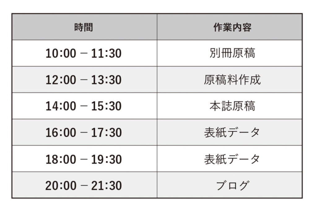 また、時間ではなく「作業」を区切っても似た効果は得られます。
