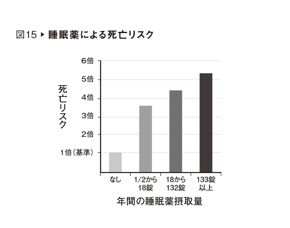睡眠薬を服用すると、追跡期間(たいていはわずか数年だ)における死亡率が、飲まない人に比べてかなり高くなるのだ。