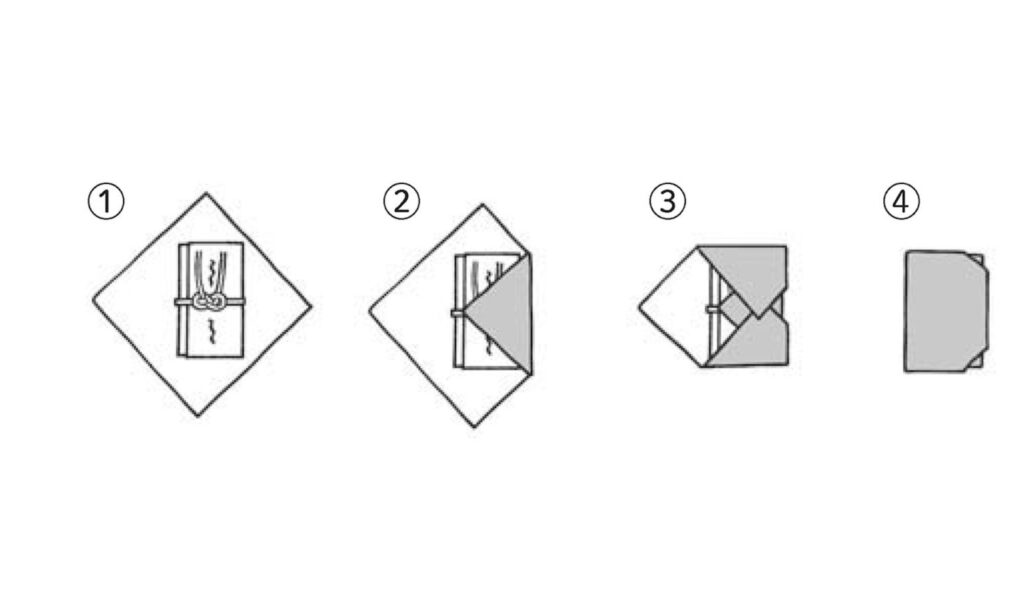 不祝儀袋を真ん中に置き、慶事とは反対に右側から折ります。