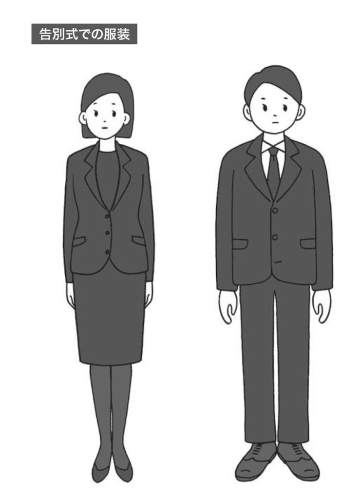 喪服で参列します。男性はスーツ、ネクタイ、靴、靴下を黒に統一。ワイシャツは清潔な白の無地にします。