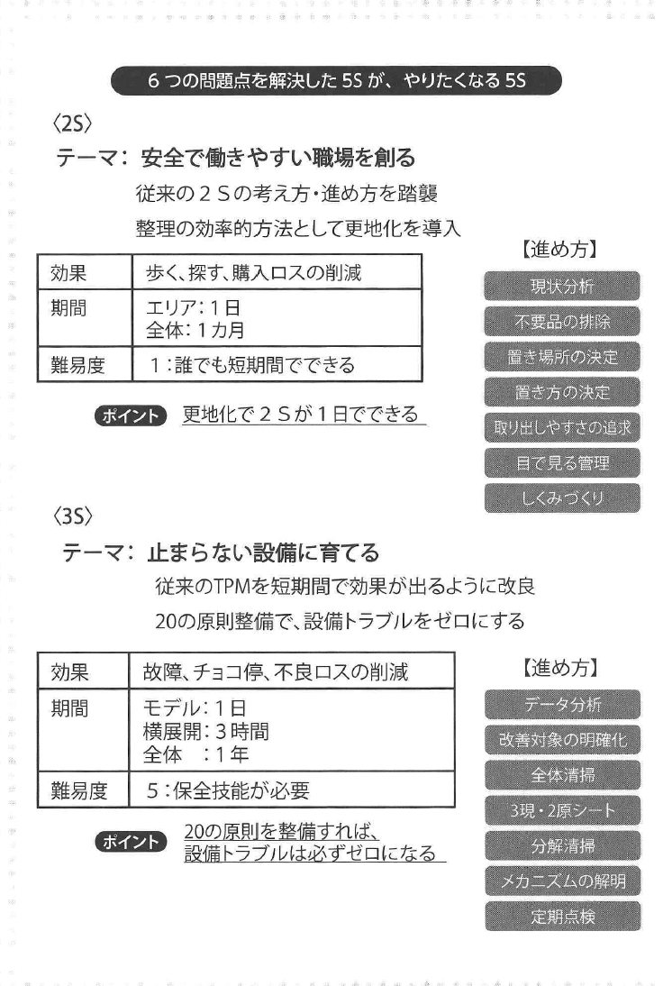- 2Sのすばらしさに比べ、3S、4S、5Sの内容が乏しい