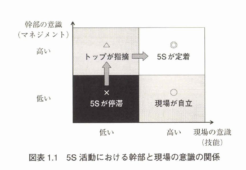 図表1.1に5S活動における幹部と現場の意識の関係を示す。