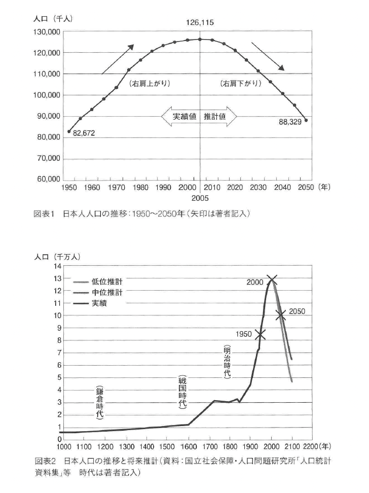 5S活動の歴史の説明の前に、時代の大きな枠組みの変化について見てみましょう。 次ベージのふたつのグラフは、100年間の日本の人口推移(図表1)と1000年間 の人口推移(図表2)を表したものです。日本の人ロピークは2oo5年でしたから、す でに人口減少が顕在化してから‐0年以上過ぎました。同時に、日本の歴史を振り返っても 例がないくらい、とてつもない大変化が起こっていることがわかります。現在、我々の目 の前で起こっていることは「100年に一度」あるいは「1000年に一度」の大変化な のです。そのとき、自分たちの所属する組織がいかにあるべきかを本気になって考えてお かなければ、企業組織はあっという間に消滅してしまいます。 右肩が上がっている時代は受け身で物事を考えればよかったのですが、右肩が下がると 一歩踏み出して行動をしなければなりません。市場は縮小し、顧客のニーズも社会の仕組 みも大変化を起こしているのです。