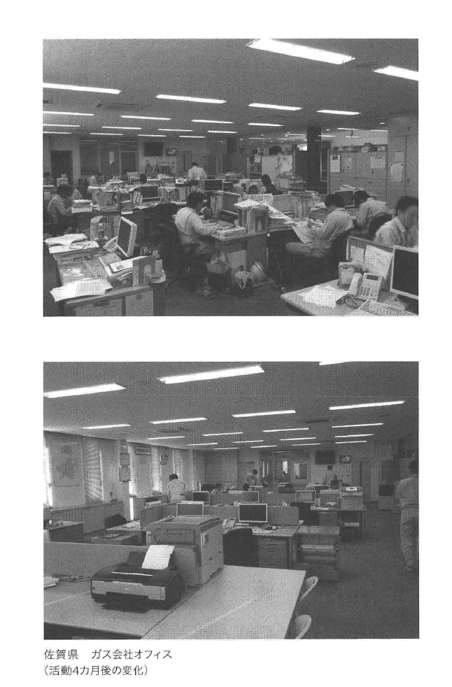 実際に5S活動に取り組んで、組織を活性化させた組織は数多くあります。 ある組織では、ベテランの女性パート従業員たちがやる気を出し、あっという間に組織 の雰囲気を変えてしまったことがあります。ある企業では、2o 代の若い世代が5S活動 を推進し、数力月で組織の仕組みを整えてしまいました。5S活動は、いわば翻訳の必 要のない共通言語であると同時に「目に見える活動」なので、いったん動き出すと実にス ムーズに活動の成果が表面に現れてきます。 この目に見える活動という特質は、中小企業にとっては重要なことです。組織の「意識 改革」は、研修に参加させたり本を読ませたりという言葉や文字やイメージでできるもの ではありません。狭い範囲の業務の中から生まれてくるものでもありません。全員で取り 組み、組織全体で成功体験を共有して初めて生まれてくるものです。具体的な変化を目に 見える形で見せることによってはじめて意識変化を起こすことができます。その意味からすると、5S活動は意識改革にとって強力なツールとなります。