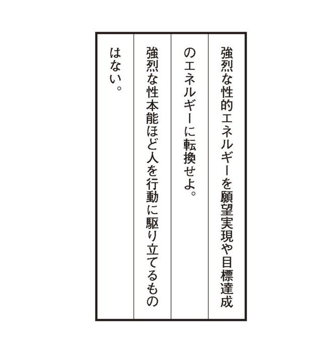 一、偉大な成功を収めた人は、強い性欲の持ち主でもあった。なおかつ、その性衝動をうまく転換する技術を自らの経験で学んだ人でもある。