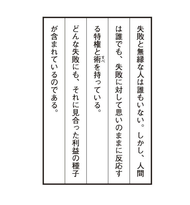 これは失敗が必ず熟した果実となって利益を与えてくれるという意味ではない。失敗には種子が含まれている、ということにすぎない。