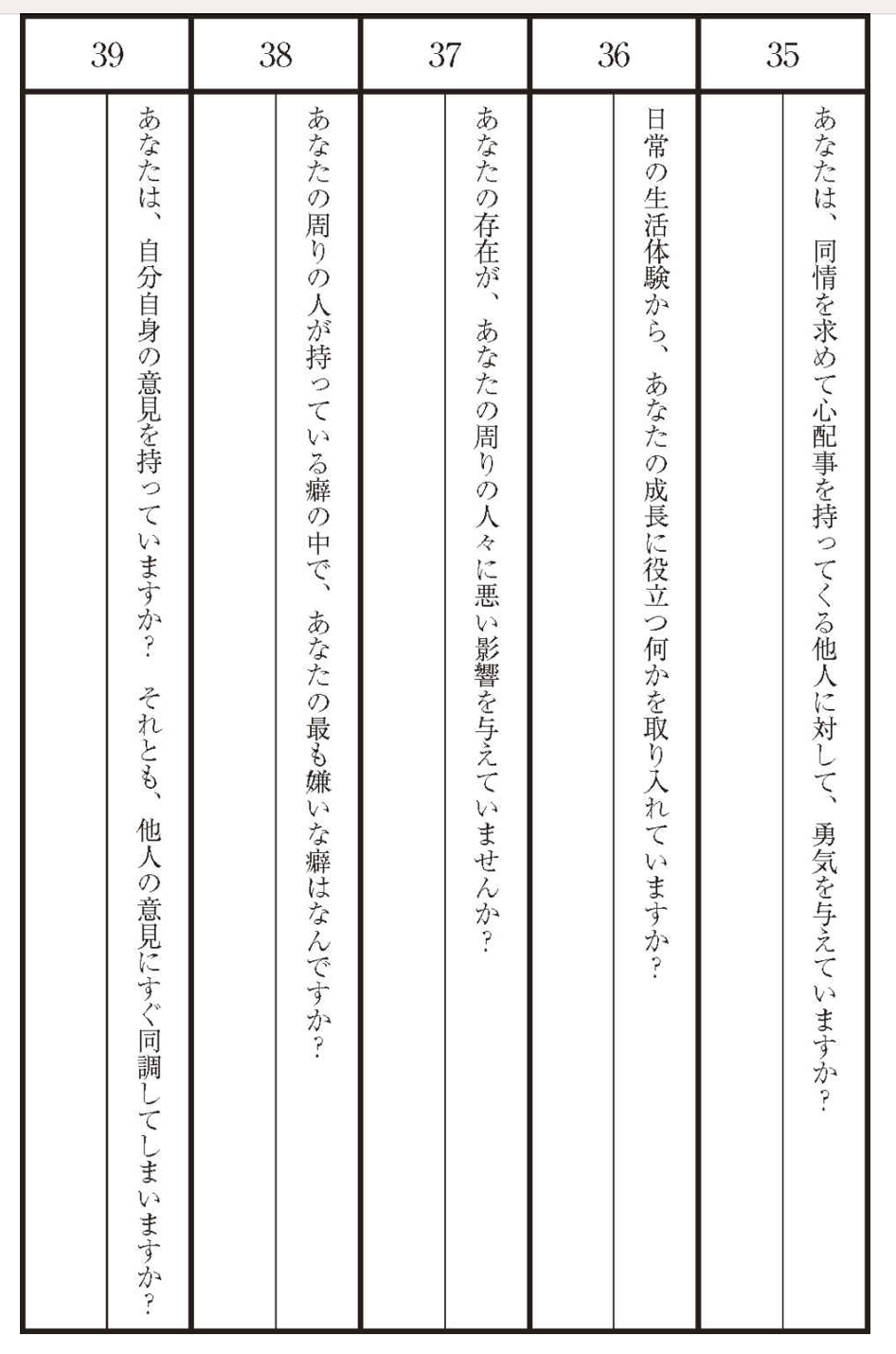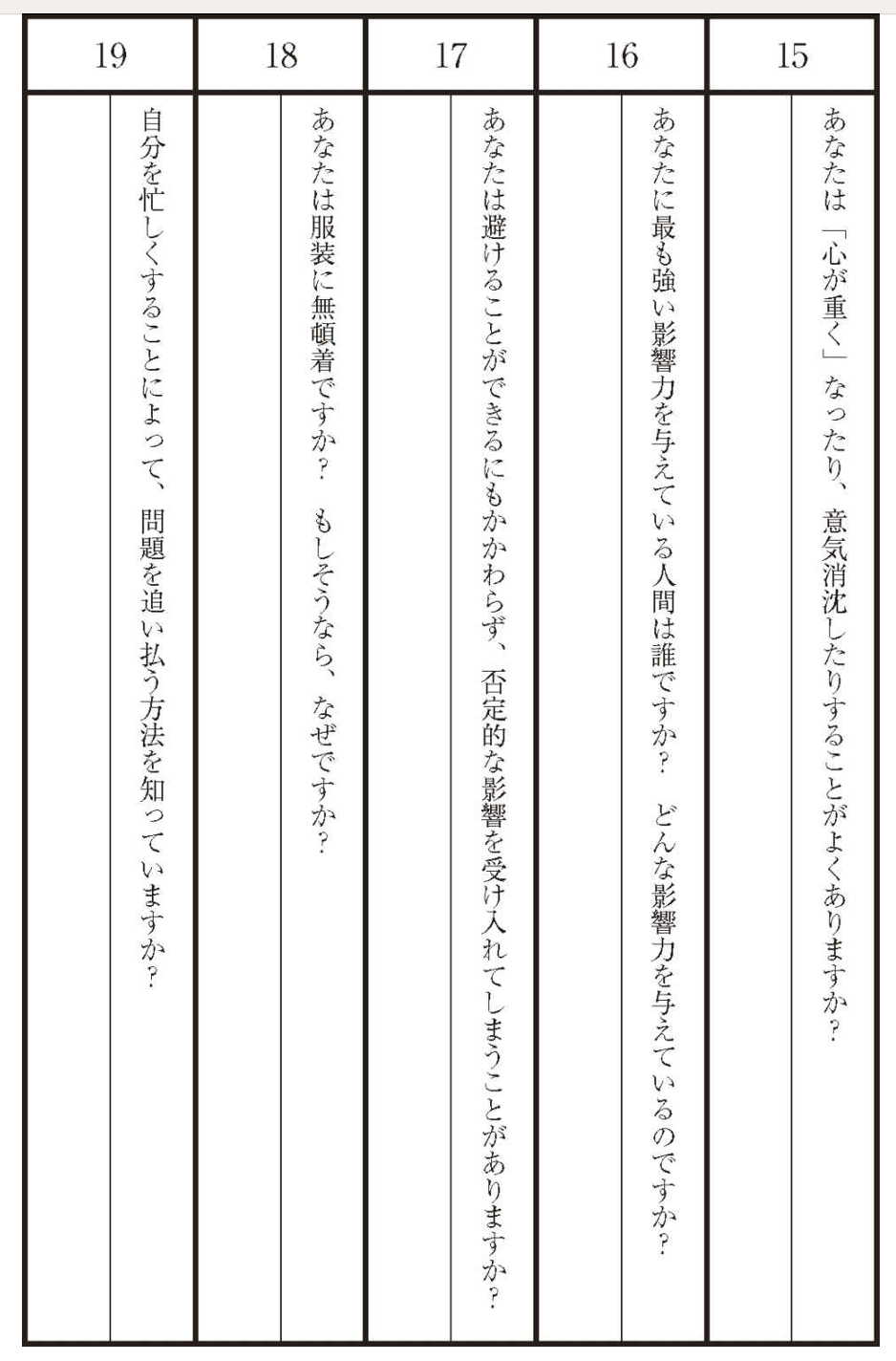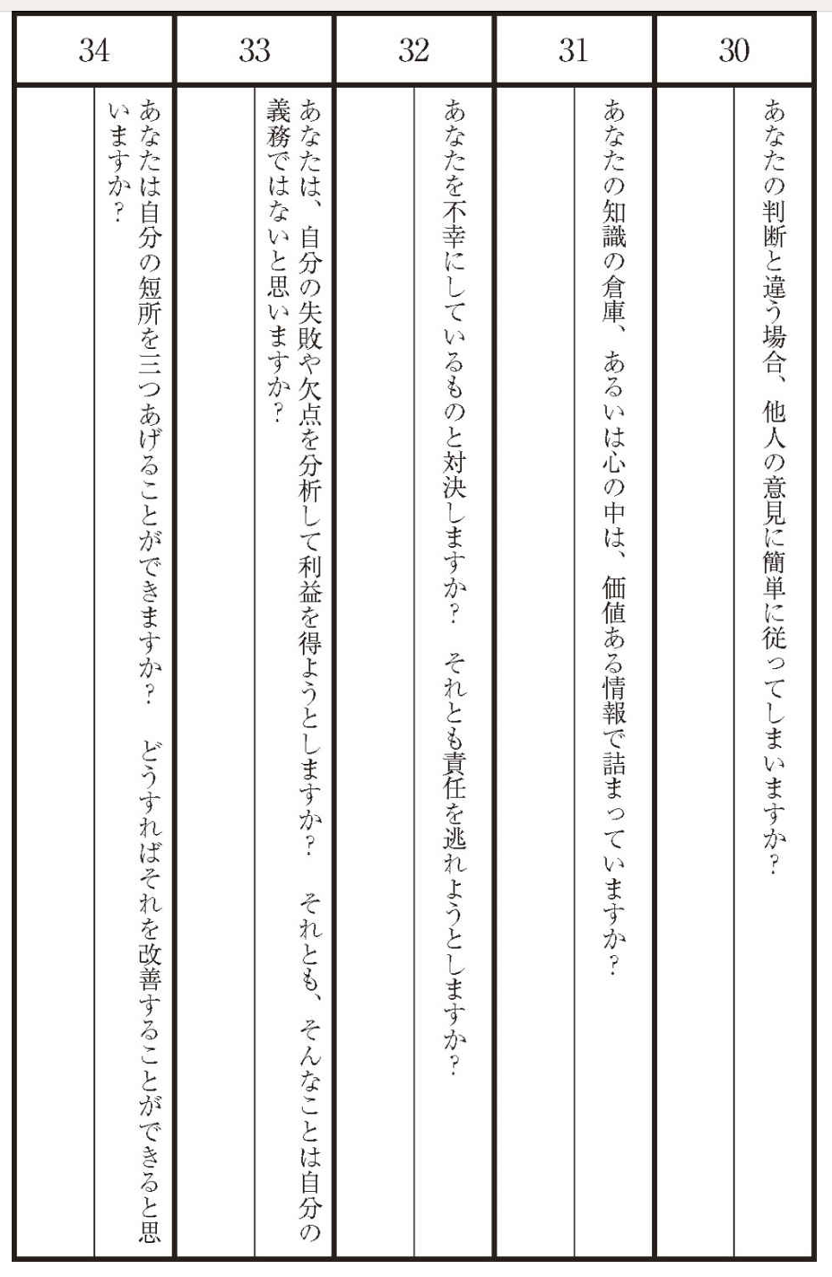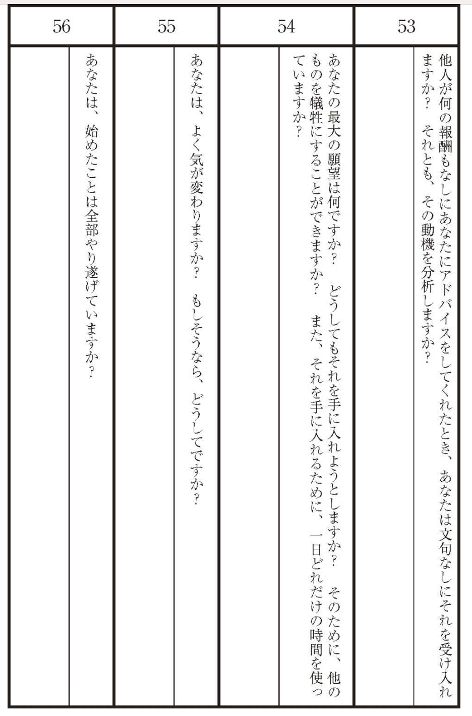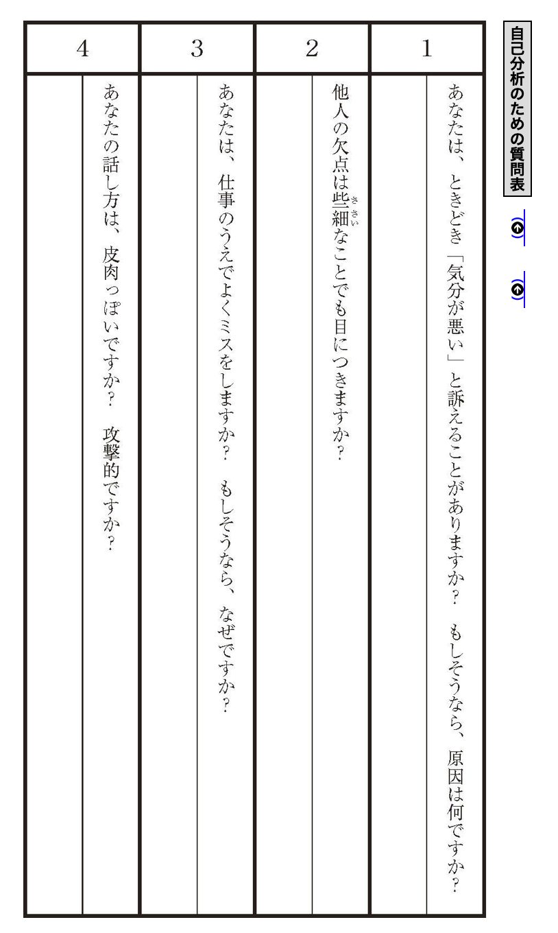 あなたは、自分自身に厳しい質問を行い、それに正直に答えなければならない。このような自己分析を行って初めて、真の自分の姿を知ることができるのだ。