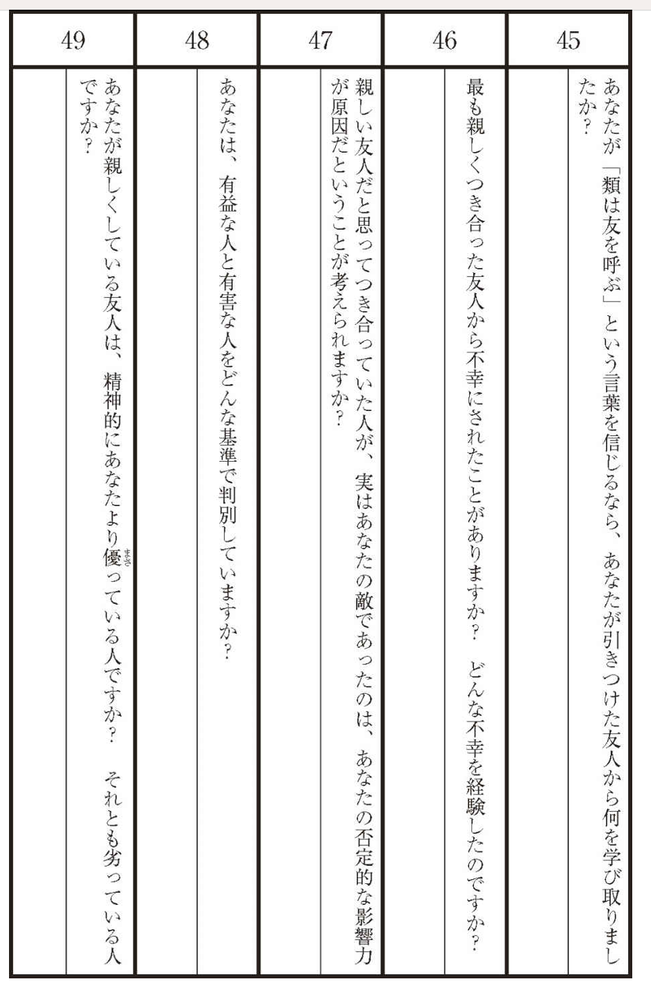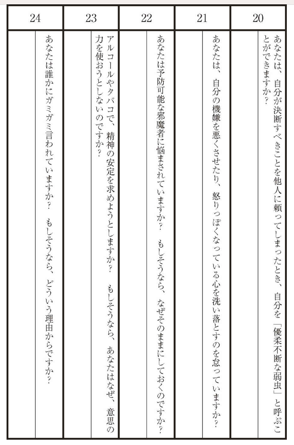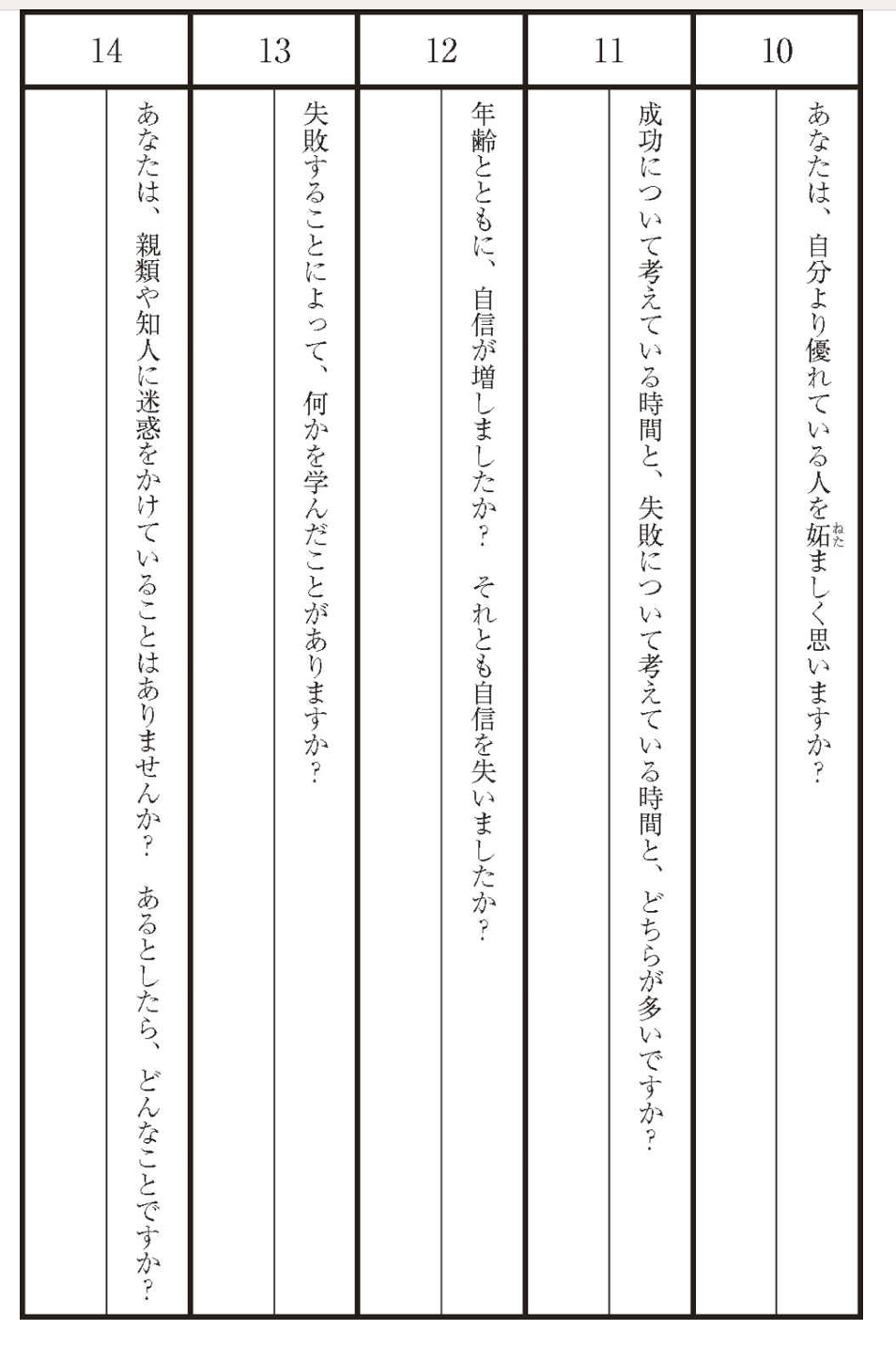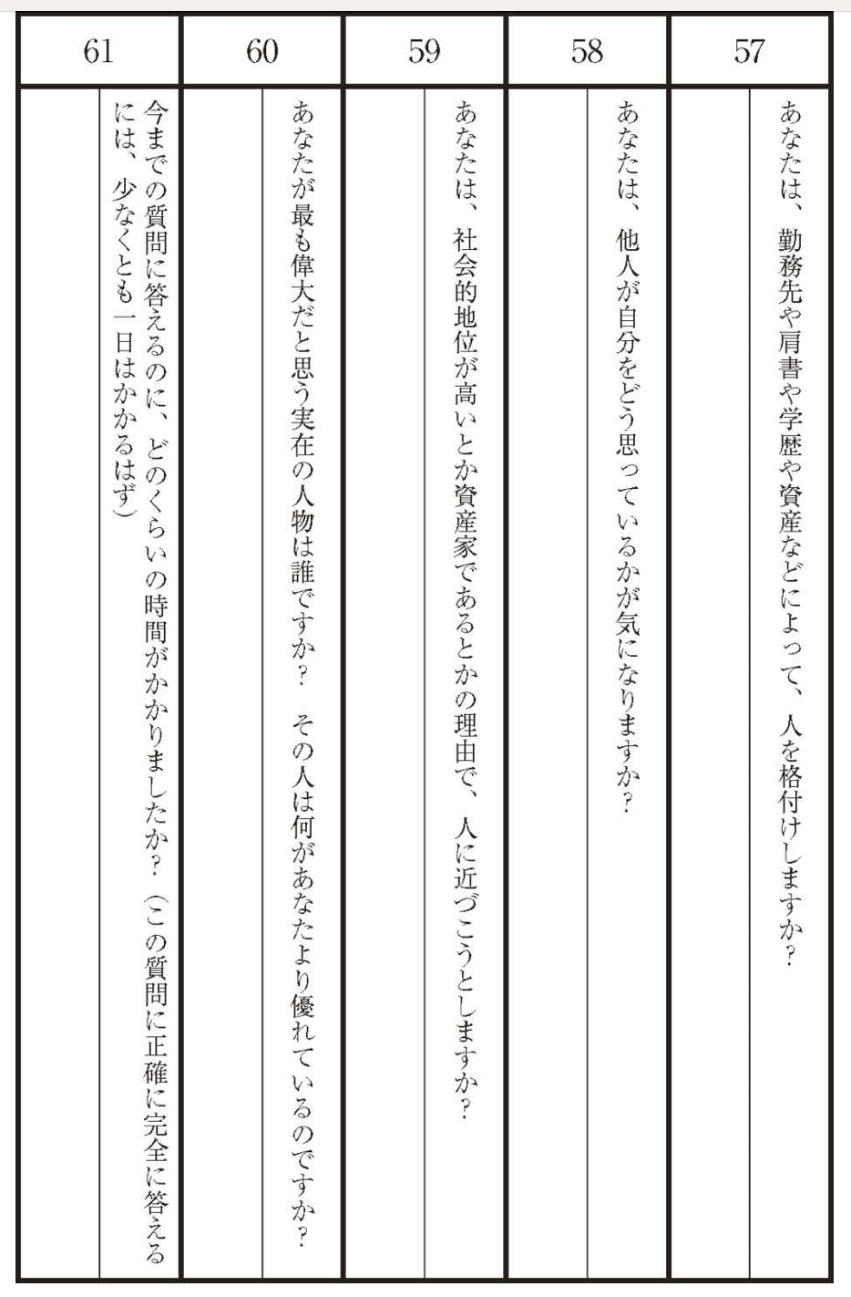 あなたは、自分自身に厳しい質問を行い、それに正直に答えなければならない。このような自己分析を行って初めて、真の自分の姿を知ることができるのだ。