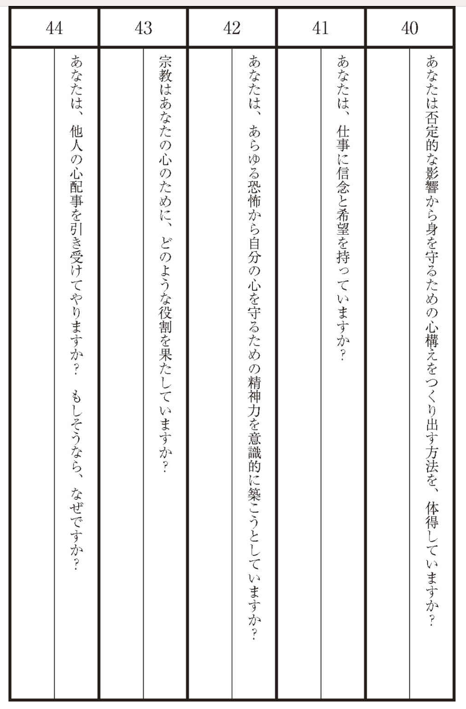 また単にこの章を読み通すだけでなく、この七つの不安のうちどのような不安があなたにとりついているのかを、注意深く分析していただきたい。
