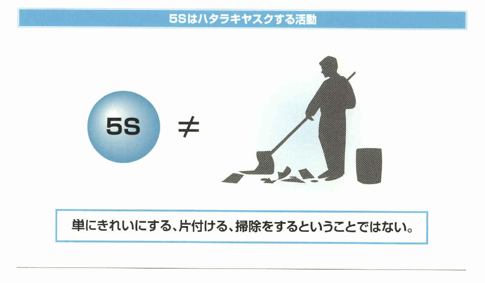 「5Sとは何かつ」と問うと「掃除をすること?」「きれいにすること?」「片付けること?」と多くの人は捉えています。