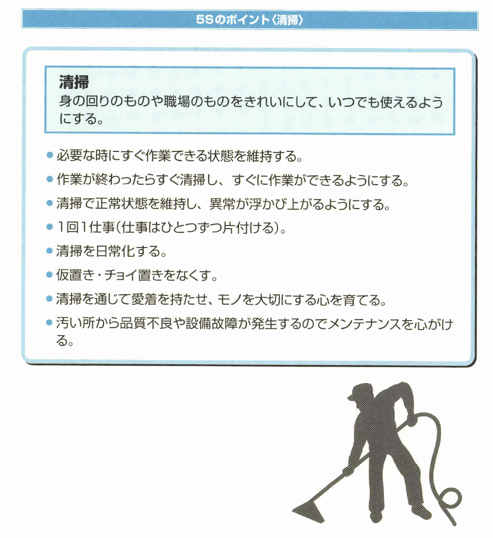 清掃は、身の回りのものや職場を常に掃除してきれいにすることです。