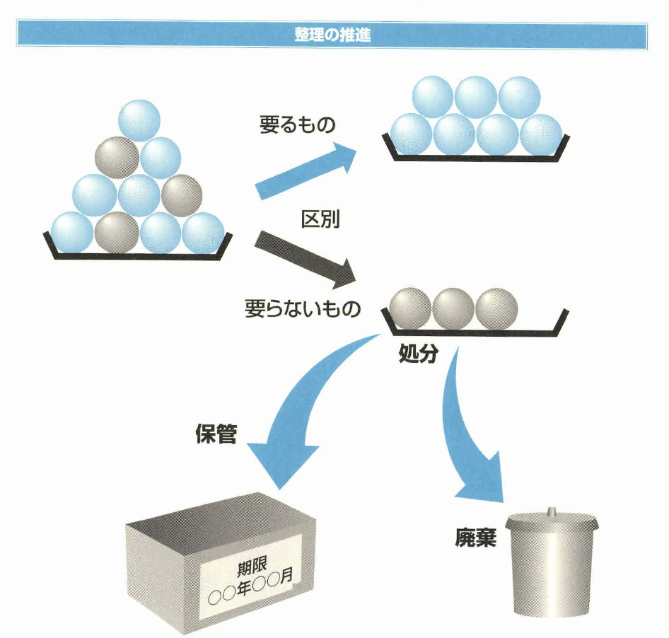 次の5S改善手順は、整理の推進です。まずは整理だけを徹底的に行います。
