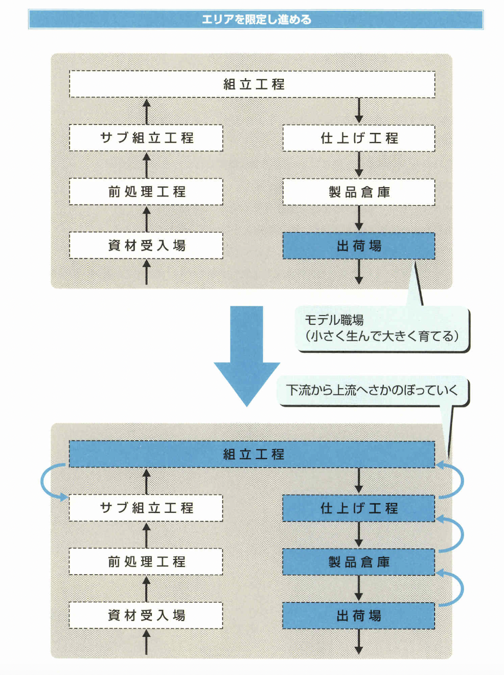 狭いエリアでまずは取り組み、徹底的に5Sすることでそれがモデル・エリアとなります。