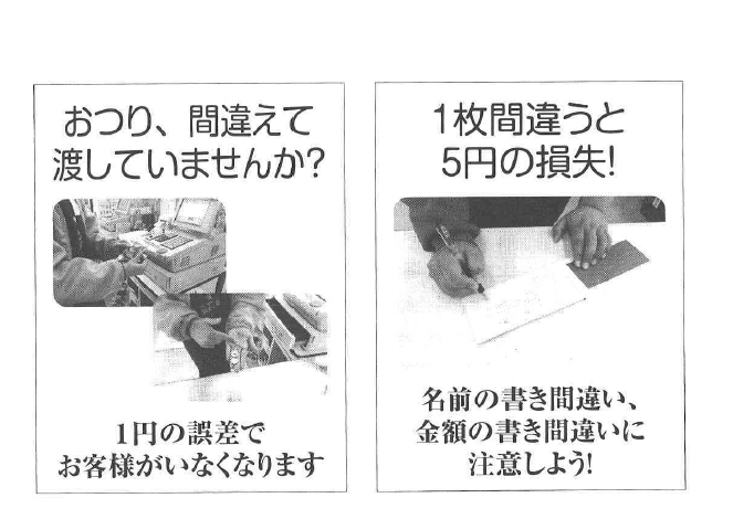 5S活動と絶対利益管理体制を連動させ た組織では、社員たちが自ら「1円ポスタ ー」というものを作るケースもあります。市 販のポスターではなく、自分たちの体の中を 通った言葉で作られたものなので、組織の中 に確実に浸透します。「1円を拾う」「1円を 落とさない」という新しい意識の向上がこう した活動には現れています。