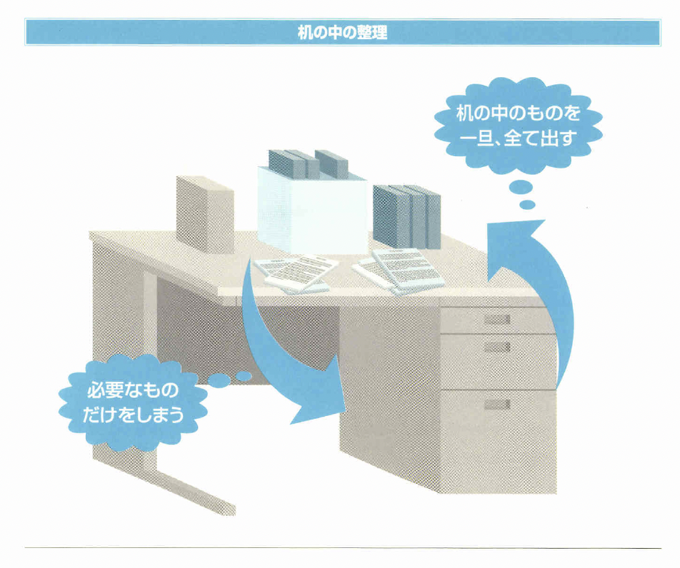 • 0引き出しの中のものを一旦、全て机上に出し、そこから必要なものだけ引き出しにしまう。