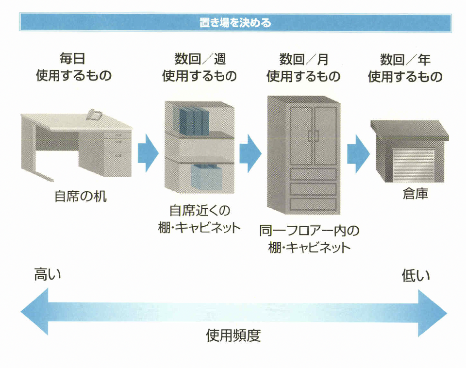• ②仕事の流れや時間の経緯に沿つた置き方をする。