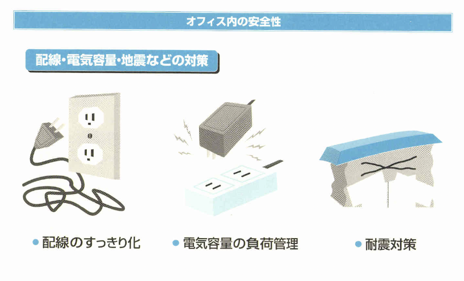 オフイス内の安全性確保のためにも、ケーブル類の始末をしっかり行います。