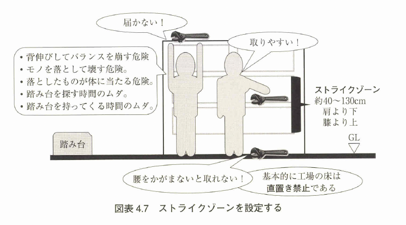 ストライクゾーンとは人が取りやすい高さのことである(図表4.7)。