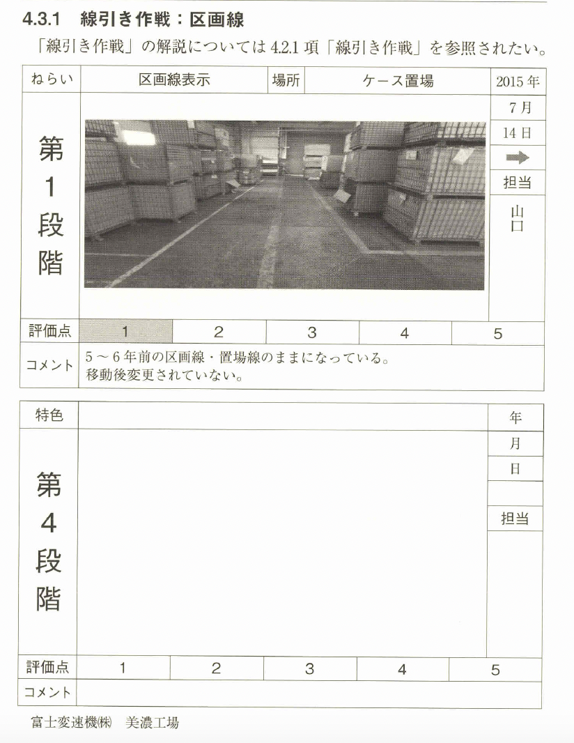 とはいえ指示しないとできない社員もいるので、 58 4.2 整頓の手法 リーダーは自主性と改善の進捗の匙加減をうまくやってほしい。