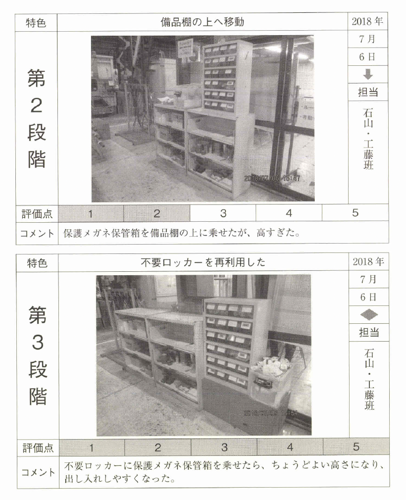 モデル場所の選定は整理が終わった場所、1日で目途がつきそうな場所、 社員の目につきやすい場所がお勧めである。