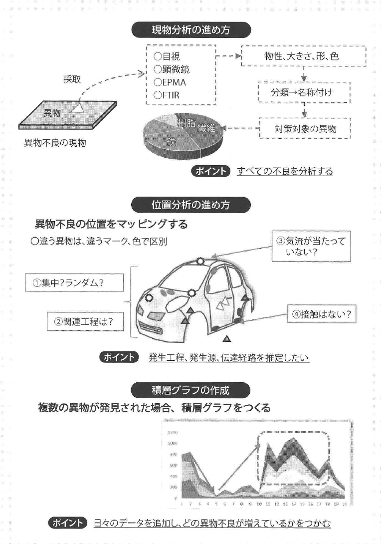 (1)異物の正体を知らない 異物不良を出している異物の正体(物性や大きさ、形、色)について知りま せん(分析していない)。