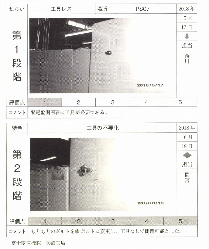 先ほど、工具を元に戻すムダをなくすと書いたが、そもそも工具をなく せないかという考え方が「工具レス化」である。