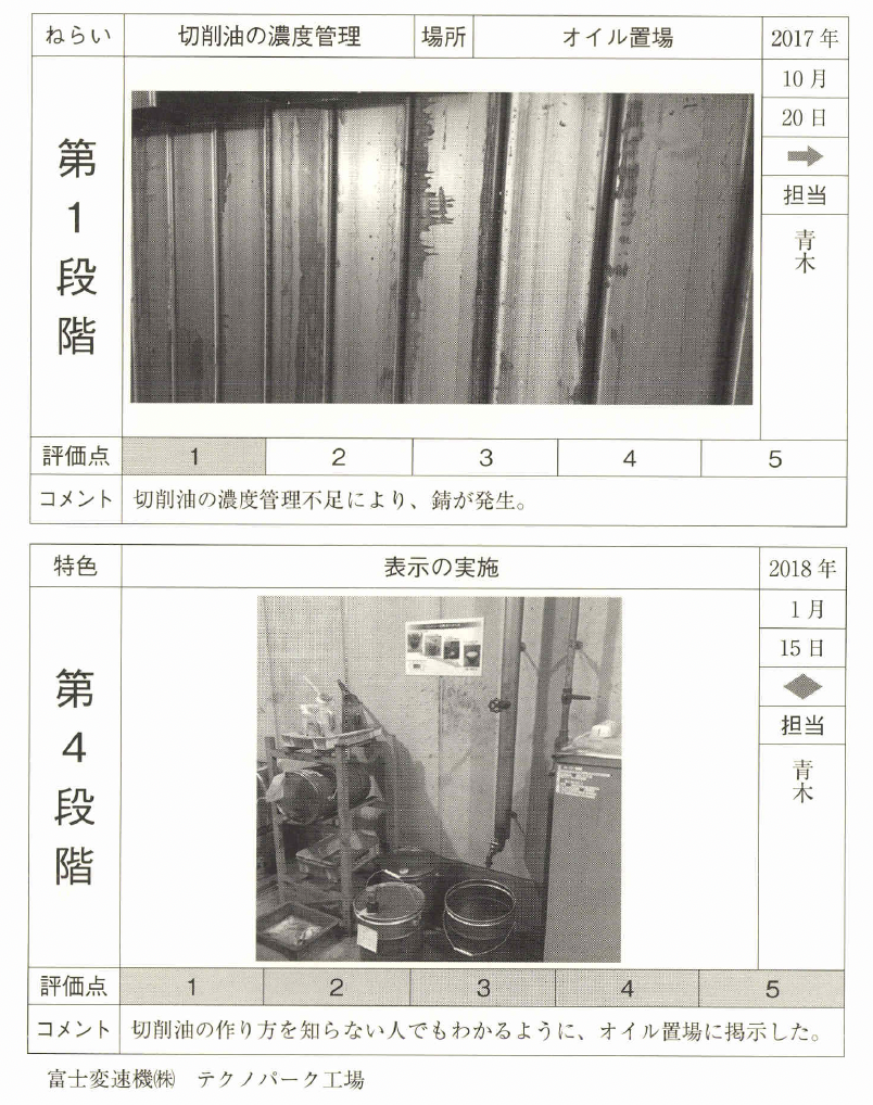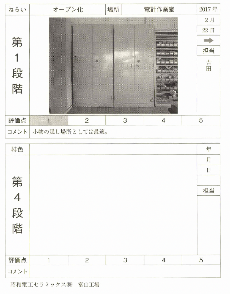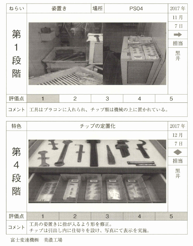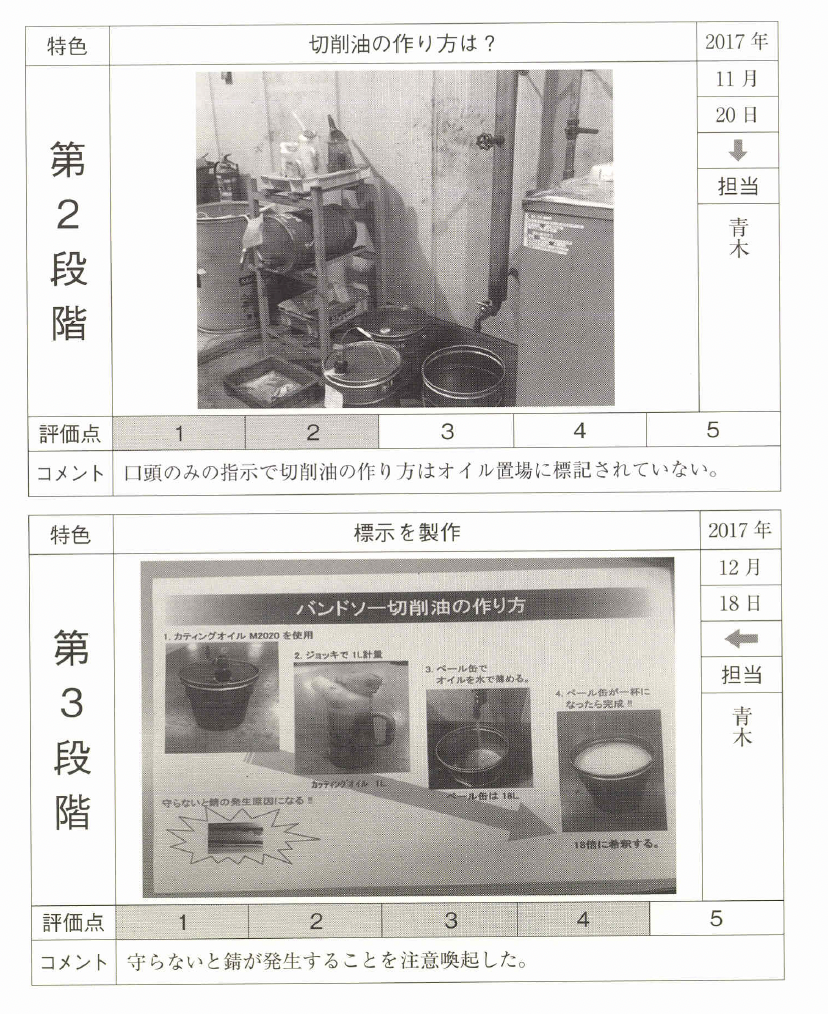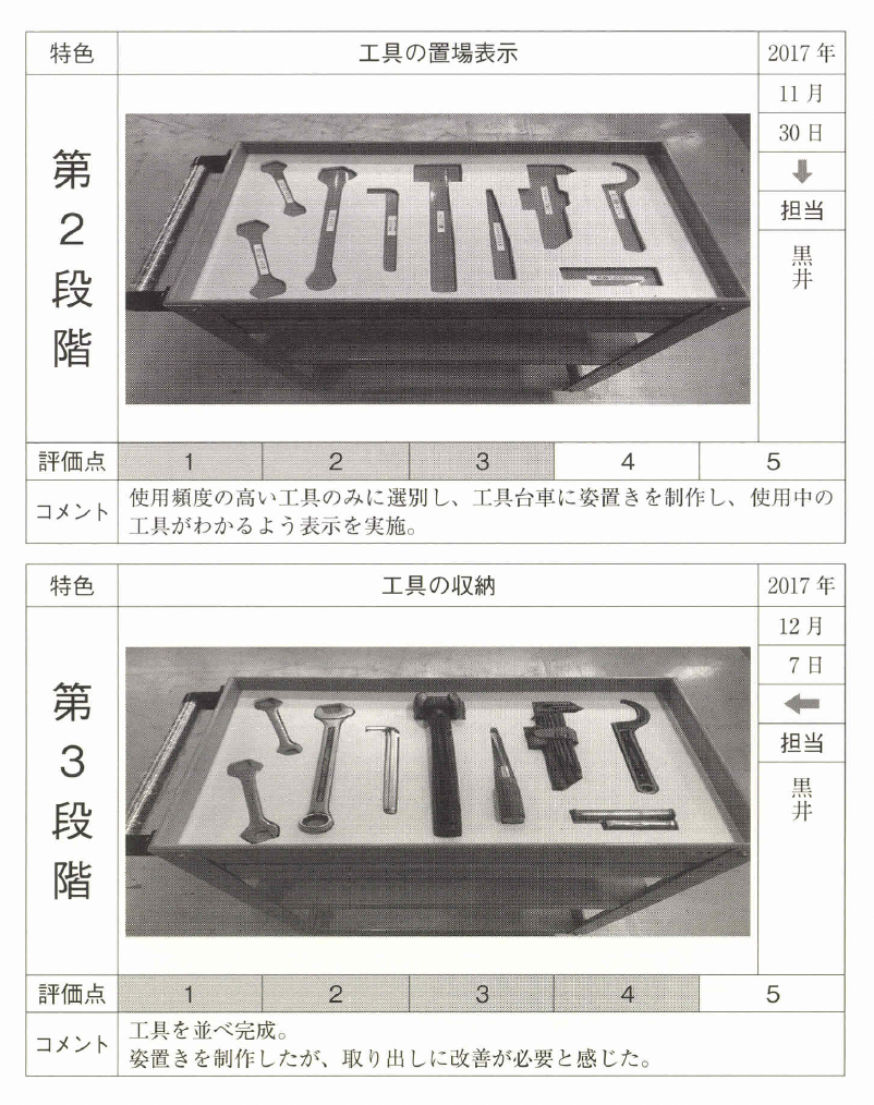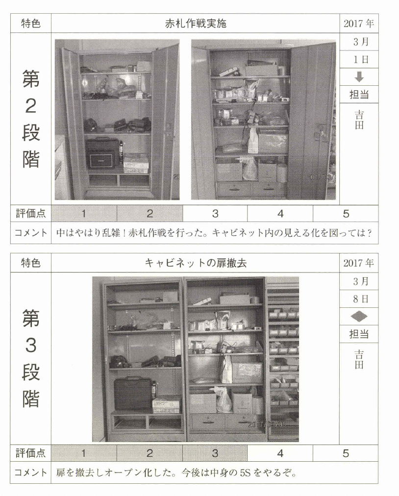 見える化に根気よく取り組み、整頓の レベルアップと現場力の向上を図ってほしい。