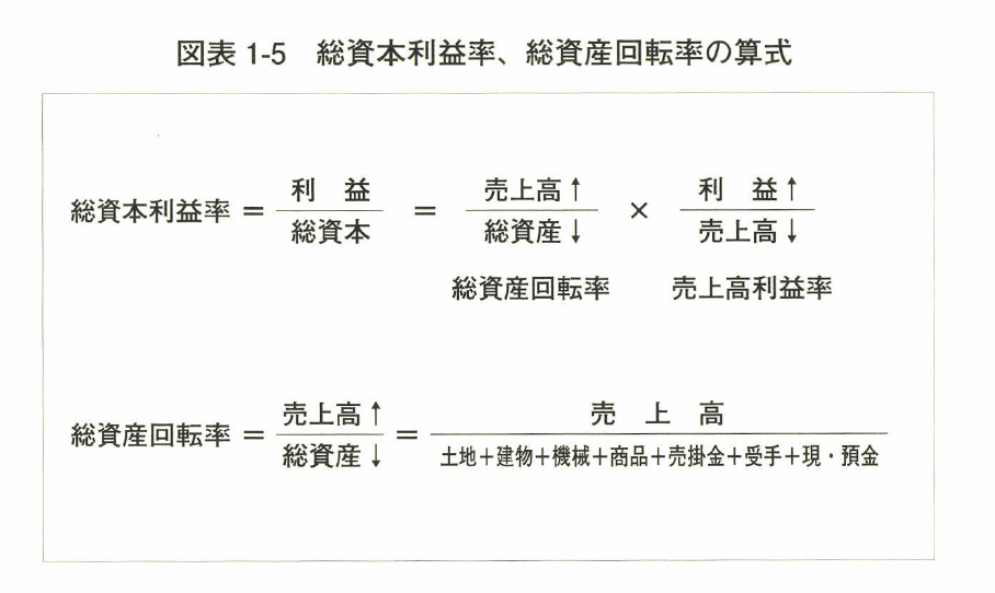 総資本利益率は「総資産回転率」と「売上高利益率」とを掛けたものである。調達資金の効率