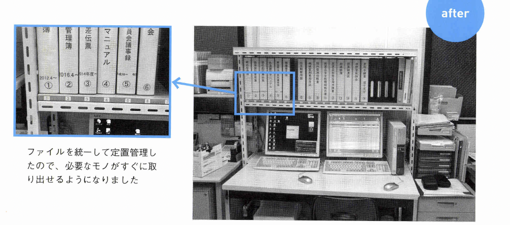 ファイルの形状を統一して、 一見出しを揃えてナンバリング 一しました。見た目がキレイに 一なっただけでなく、定置管理 一もできるようになりました。