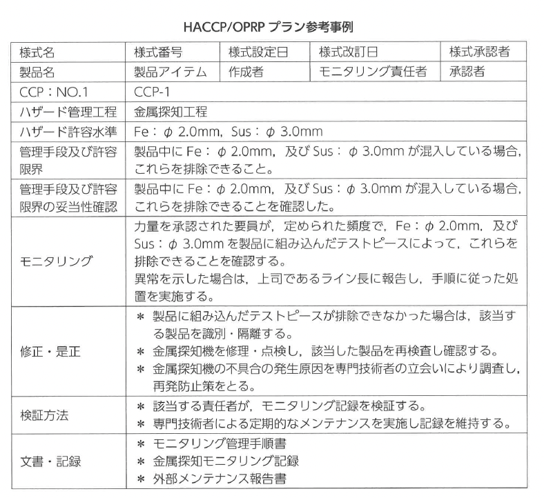 また,「ハザード分析表」での多数のPRPをどのように日々検証しているのか 確認できませんでした。