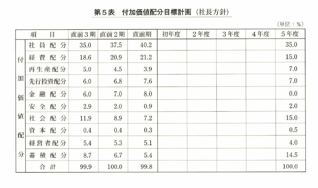 五年後の社員配分を二五%と書き入れたのである。