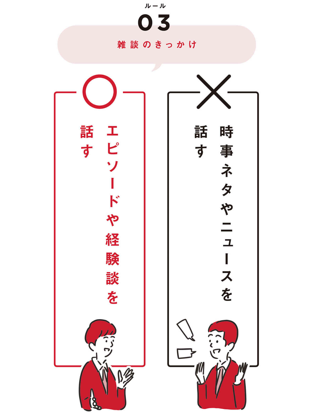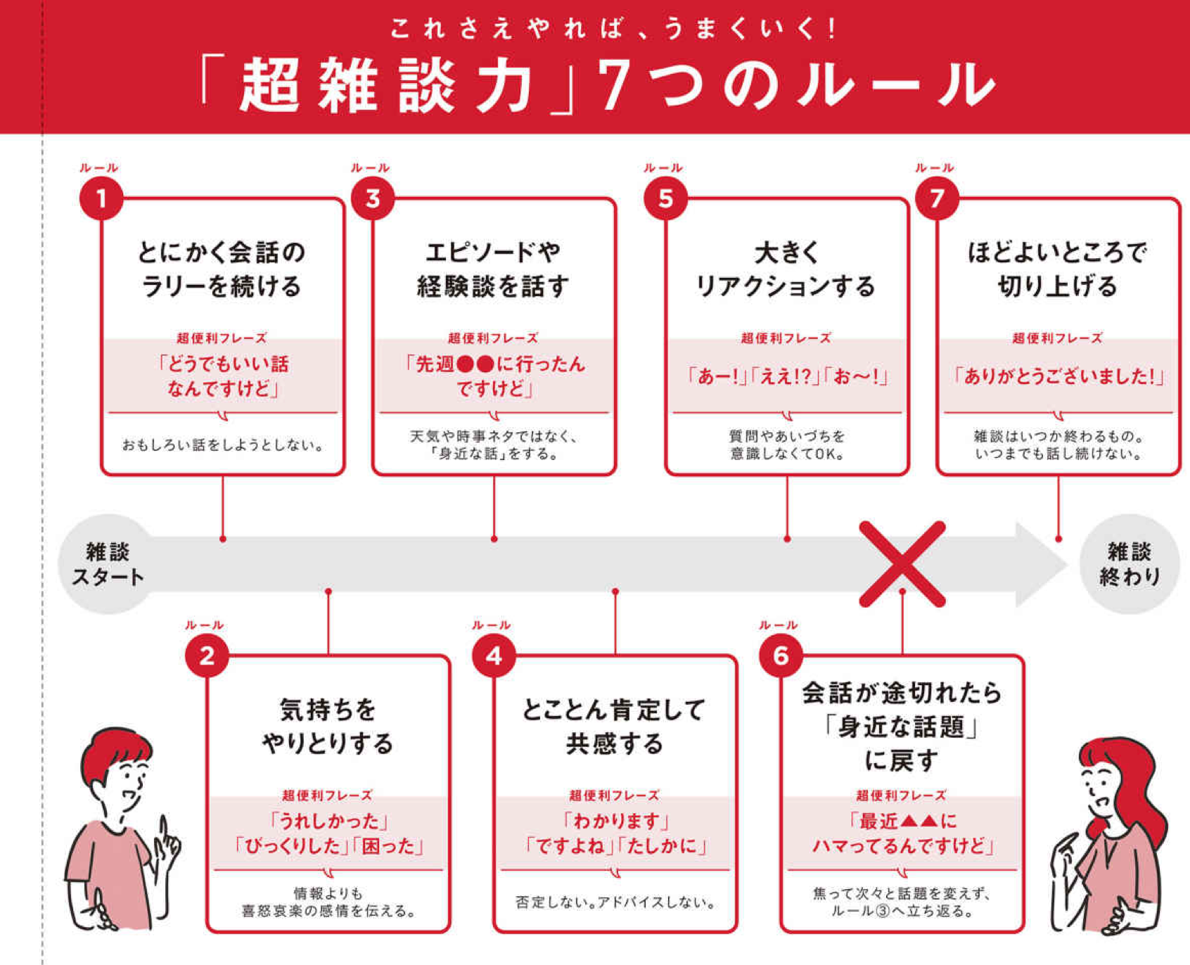 これまで見てきた5つのルールで、正しい雑談のおよその雰囲気はつかめたと思います。