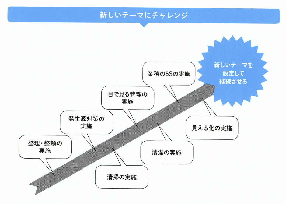 マンネリ化を防ぐには、常に新しいテーマにチヤレンジし続けることです。 新風が吹き込まれることで、5Sへの取組みが継続し、定着化していきます。