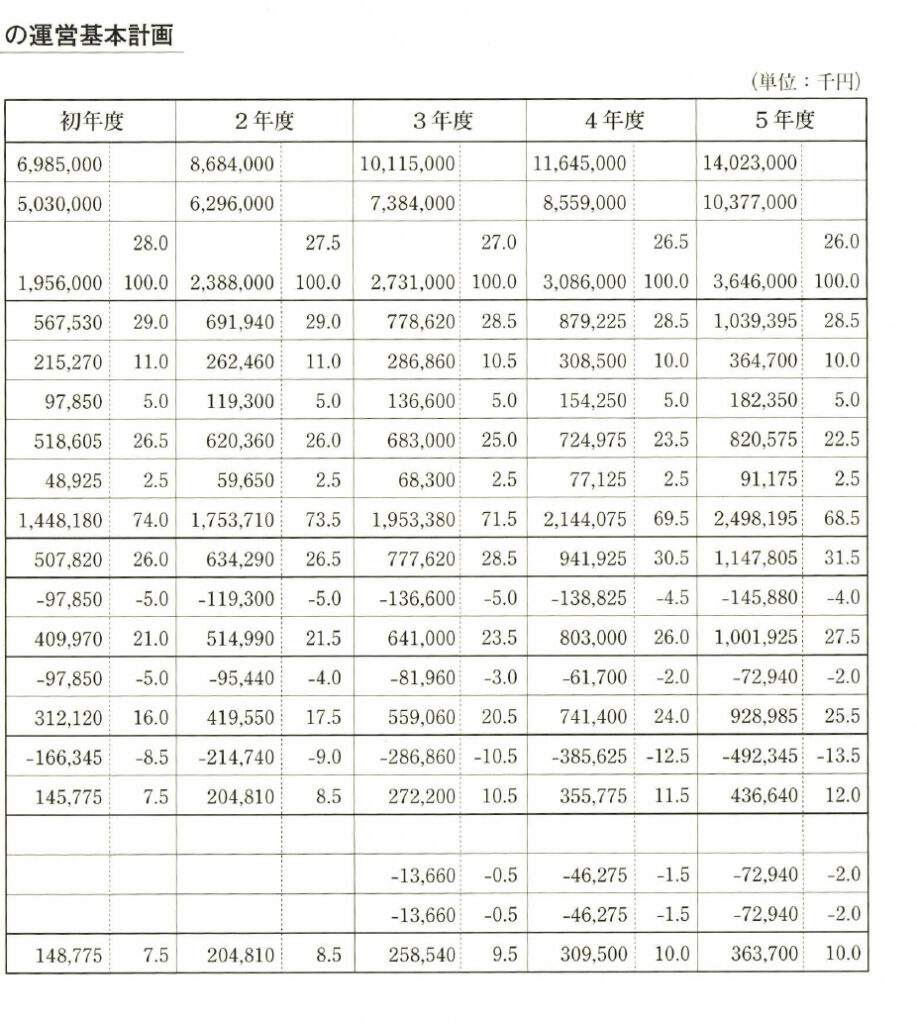 これで運営目標計画の上の三行がすべて埋まった。後は第四章で設定した付加価値配分率を