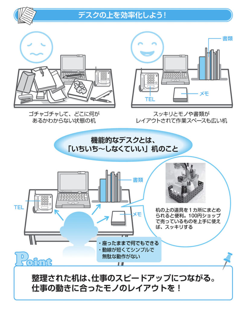 「整理されたデスクは、あなたの仕事をスピードアップさせる」ということを肝に銘じてください。
