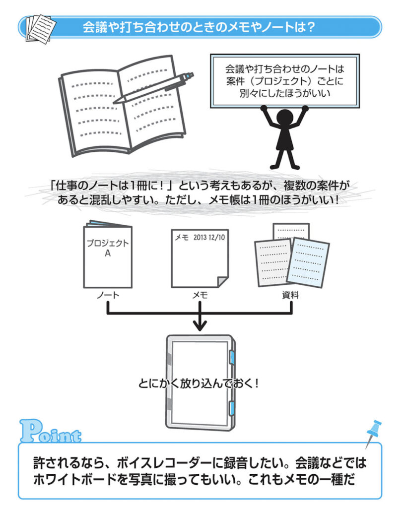 ノートは「プロジェクトごと」につくるのが基本 会議や打ち合わせでのメモも、普段使っているノートや手帳にしてしまう……という人は多いと思います。