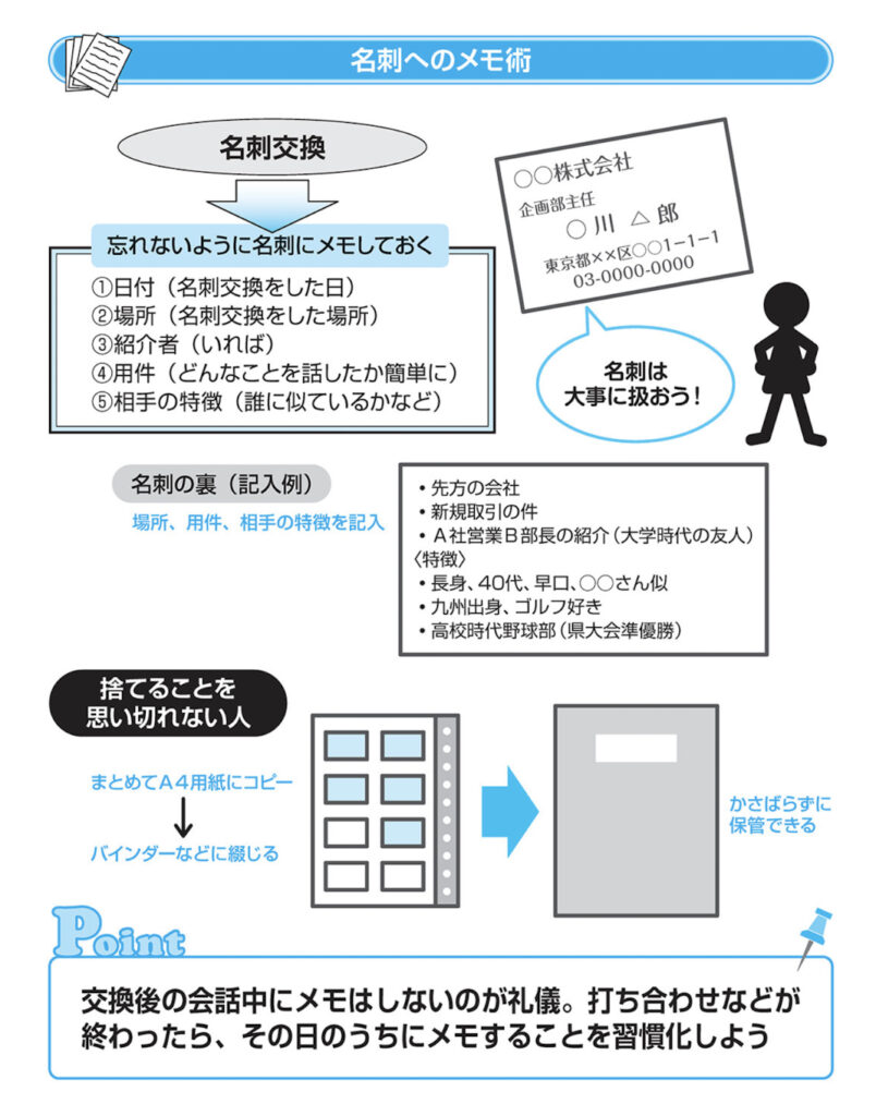 「名刺へのメモ」は、名刺交換の機会が多い営業マンなどで、多くの人が実践していることです。
