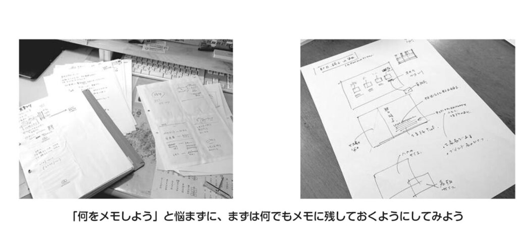 未整理でもいいので、とにかく頭の中の情報、考え、思いついたことをすぐにメモします。