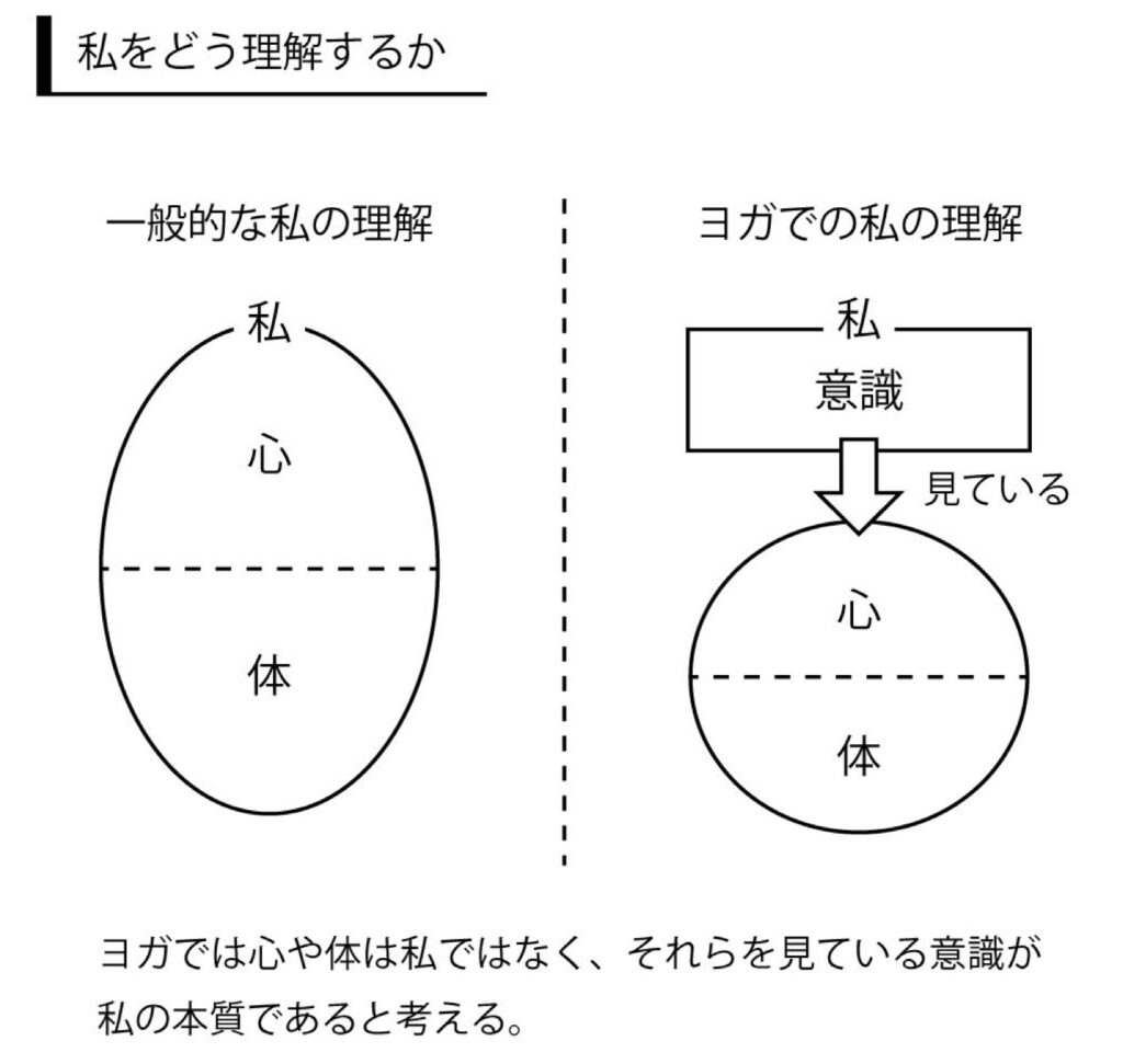 しかしヨガの教えでは、この二つは私ではないと考えるのです。では何が私かと言えば、心や体を認識している「意識」が私なのです。