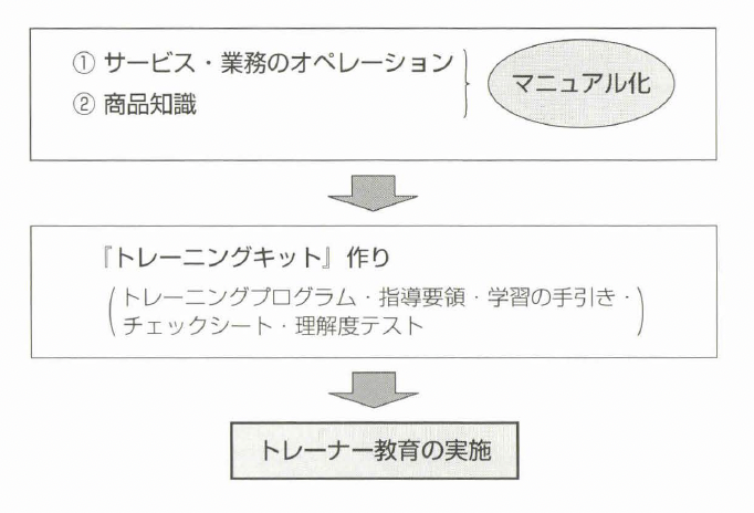 進め方としては、 \ ① 全国の優秀販売員を取材 ② それをもとに、新人でもできるように情報を整理 ③ 販売方法・セールストークを標準化 ④ 『ドゥハウマニュアjレ』として作成(行動に力点を置いて)