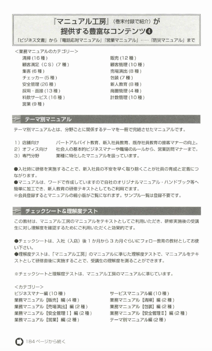 作成したものは、『サービス・業務のマニュアル.I (製造から販売に わたるオペレーションの標準化)の1冊である。