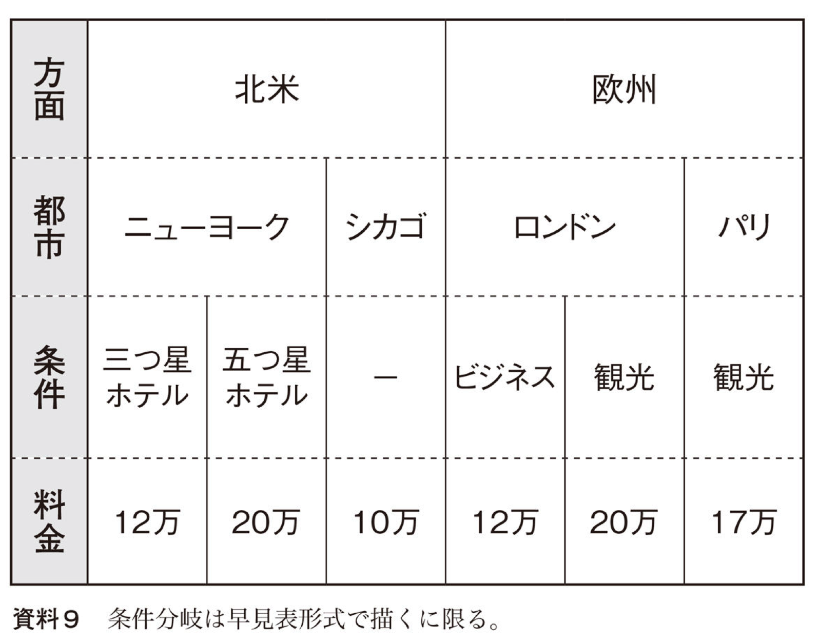 資料9のように、手順を上から下へ順序よく並べ、場合を左右の位置の違いで表す。